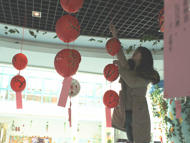 为了让园所、教室环境变得干净、整洁,老师和阿姨们提前两天就开始忙碌:瞧,阿姨们努力打扫的身影随处可见,一下子,教室变明亮了,专用活动室变整齐了,整个幼儿园都变得干干净净,充满活力……老师们或埋头装饰教室环境,为幼儿创造游戏的“乐园”,或努力营造共享新年环境,挂上喜庆的吊饰和红灯笼,张灯结彩,喜气洋洋。
