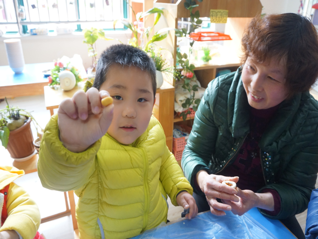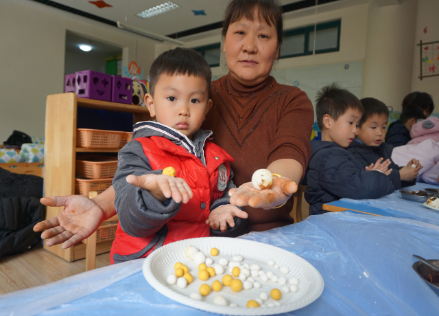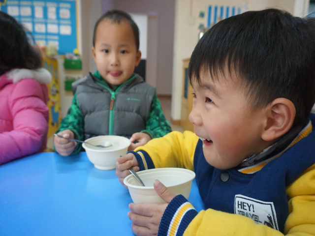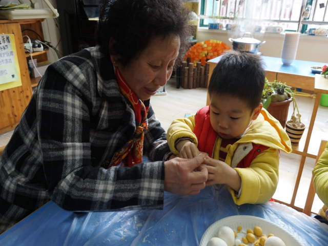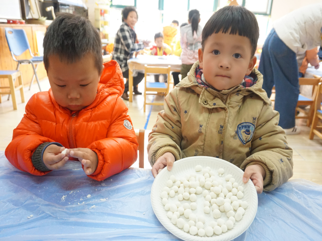 小班此次以“团圆”为主题,邀请了部分幼儿的奶奶来园参加亲子活动——搓元宵。活动开始后,教师先以谈话、歌谣等形式帮助幼儿简单了解元宵节吃元宵、赏花灯、猜灯谜的习俗。接着,每个班都为幼儿准备好制作元宵的材料,由能干的奶奶们负责指导小朋友动手制作,大家齐心合力,一双双小手做出了一颗颗甜蜜的元宵。活动最后,一碗碗热气腾腾、珠滚玉圆的元宵被端上餐桌,一阵阵的香气扑鼻而来,小朋友和奶奶一起开心地品尝自己的劳动果实,不仅感受了“团圆”的节日氛围,也享受了甜蜜的亲子时光,留下了童年温馨而珍贵的回忆。