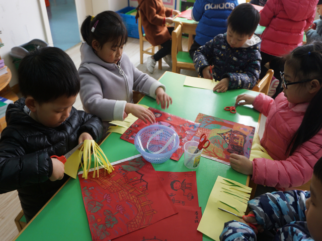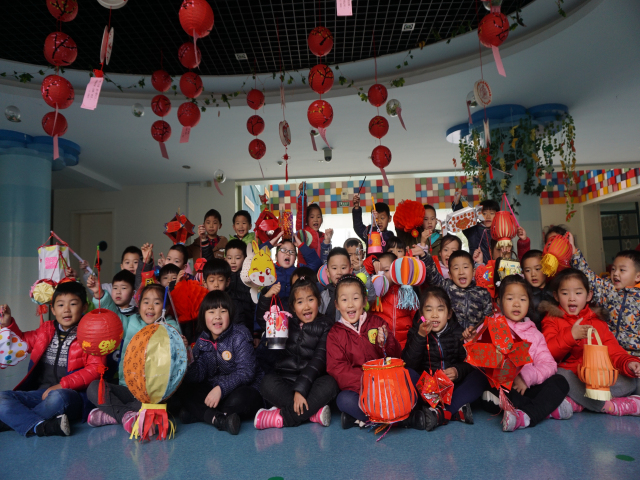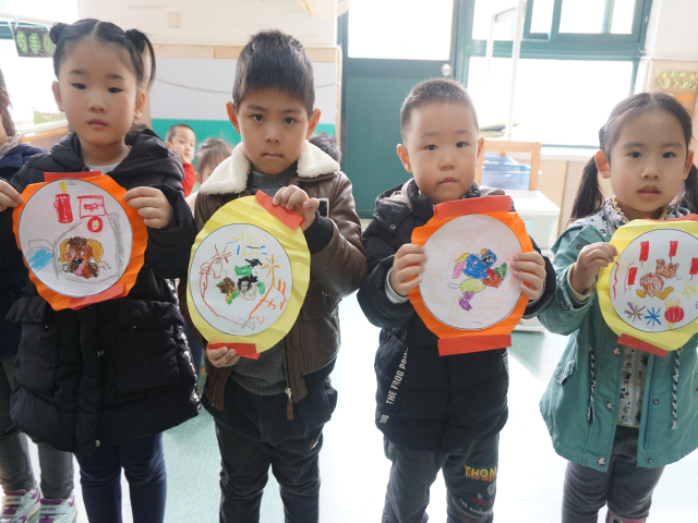 中班此次以“红火”为主题,由教师和幼儿共同选材,一起动手制作好看的花灯。活动中,孩子们听着花灯的故事,欣赏了各式各样的花灯。他们跃跃欲试,用灵巧的小手画出了狗年的喜庆,折叠出满心的喜悦。可爱的小嘴在火红的灯笼上吹出美丽的烟火,点画出节日的欢乐。终于,一个个样式新颖,色彩绚丽的花灯做好了,孩子们彼此欣赏自己亲手制作的成果,徜徉在五彩缤纷的花灯海洋中,感受着元宵节“红红火火”的节日氛围。