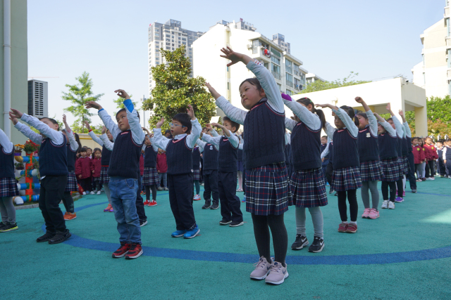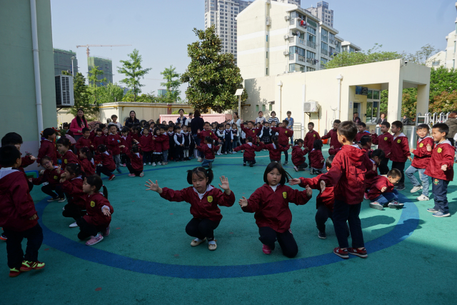 伴随着主持人的讲话和动感的旋律,小、中、大班的孩子们陆续登场。他们用饱满的精神状态,整齐有力的动作,专注的神情和天真可爱的笑脸,向评委们展示着自己最棒的一面。各年龄段老师在韵律操的编排上大胆创新,将律动、走、跑、跳等基本动作与音乐有机结合,使整套操既体现了锻炼性,又洋溢着童趣,赢得了现场每一位观众的阵阵掌声。