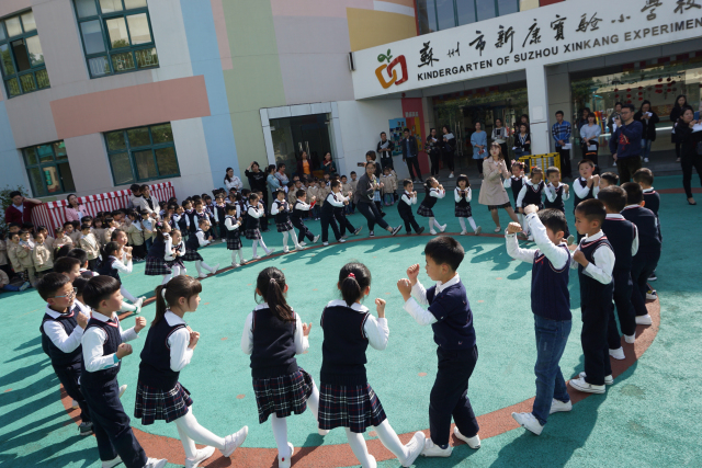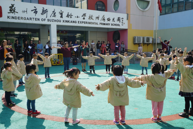 幼儿园早操、韵律操不仅是孩子们进行身体锻炼的一项有益活动,也是幼儿园里一道亮丽的风景线。4月17日下午,新康实验小学校附属幼儿园开展了早操、韵律操的评比活动。活动中,我们邀请了家委会的成员来做评委,欣赏了班级师生良好的精神风貌。