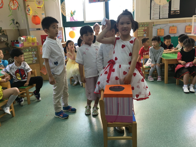 “六一儿童节你们想怎么庆祝?”“需要哪些准备和材料?”“老师可以为你们做些什么”……在谈话中老师一一了解了孩子们内心的真实想法,从内容的制定,到材料的收集,最后集体投票表决,老师给予了他们最大的支持和帮助。