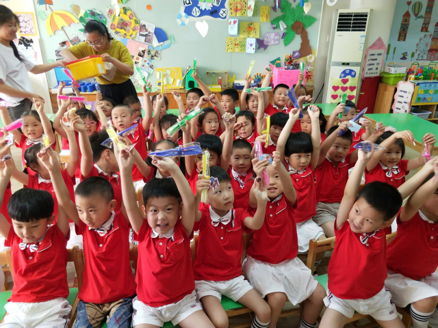在孩子们自己的精心“策划”下,他们以看电影、抽奖、互赠礼物、才艺表演等不同的游戏内容和形式庆祝节日。