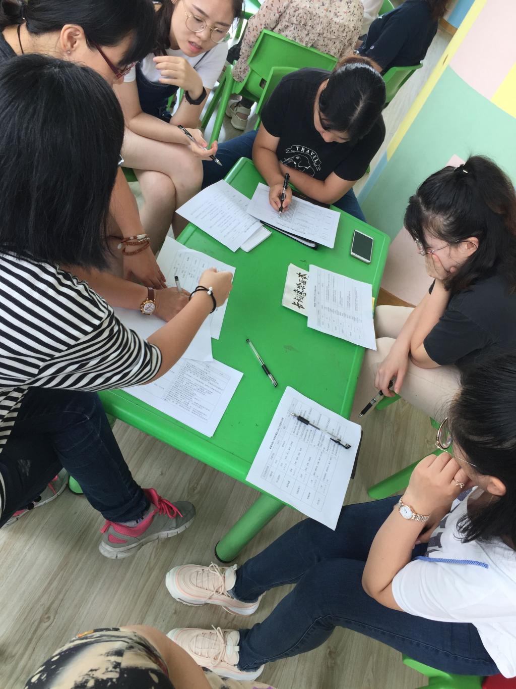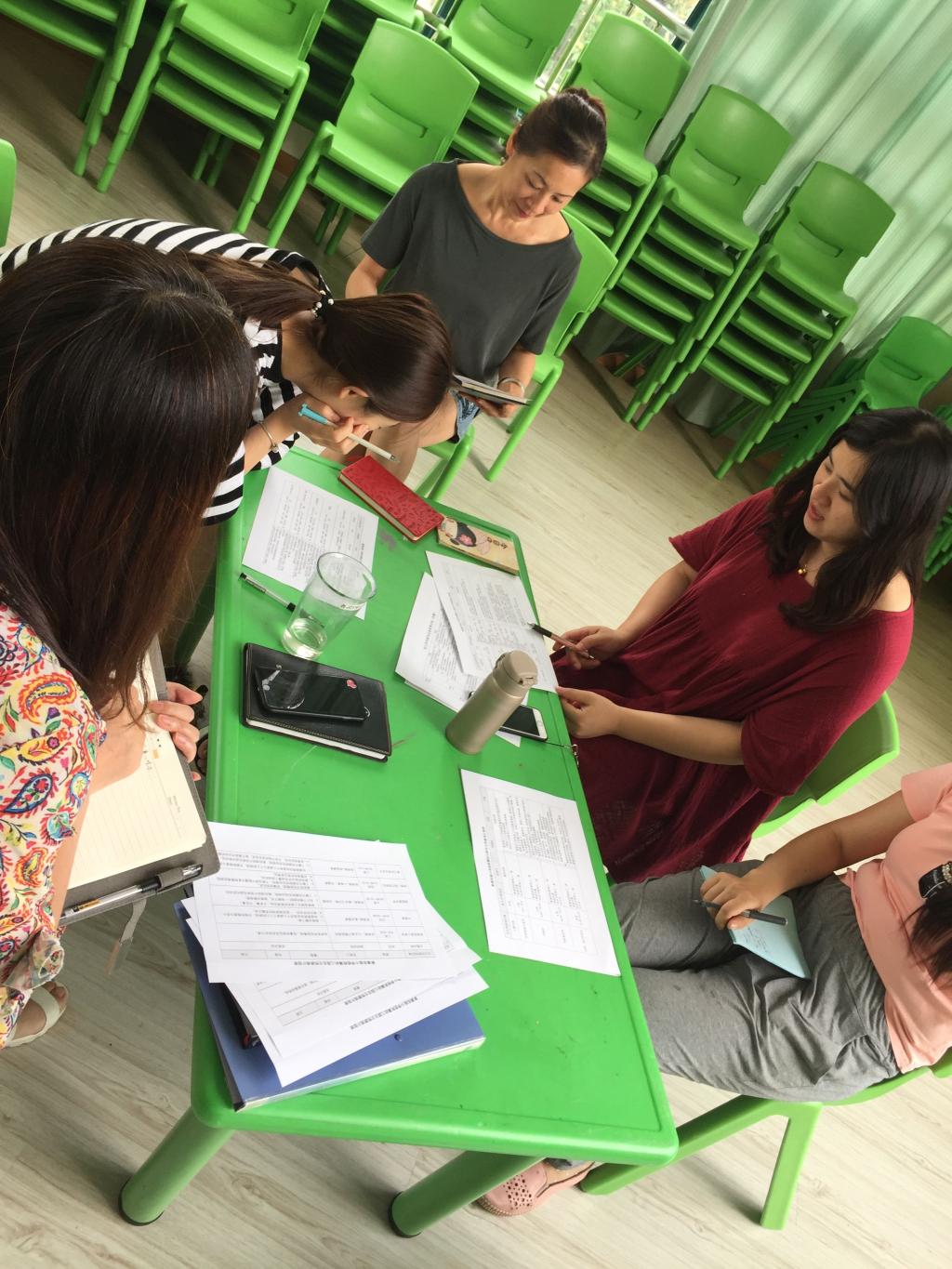 接着老师们对每个活动场室进行了目标和材料的审议,对照原有的材料进行充分的分析,并在原来的基础上进行完善,如科学探索屋,可以添加一些利于幼儿制作的材料,让幼儿通过分类材料进行不同玩法的创新;大型建构活动室,要注重低结构的材料,发挥幼儿的主观能动性;在户外活动中让幼儿做自己的主人,利用一切自然资源让幼儿游戏。