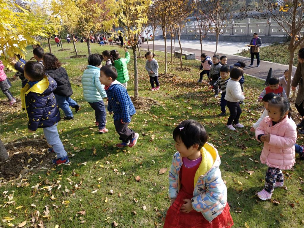 结合十一月主题《美丽的秋天》,11月22日苏州市新康实验小学附属幼儿园小班的小朋友们在老师们的带领下兴致勃勃的去社区公园进行了“寻找秋天”社会实践活动。秋高气爽的天气给大家的出游带来了好心情,小朋友们欢呼雀跃,一边走一边看,还时不时的蹲下来摸一摸、闻一闻。老师和孩子们一起走进落叶世界,去探索、去发现、去想象,孩子的小脚踏在落叶上发出沙沙的响声,一阵大风吹来,树叶飘落的情境引发孩子无限的想象。掉落在地上的各种树叶,在孩子们的眼中有着无比重大的价值,“我的树叶为什么是黄色的?你的树叶为什么是绿色的?”“这片树叶是圆的,那片树叶是扁的”……不同落叶引发了孩子们的探索。
