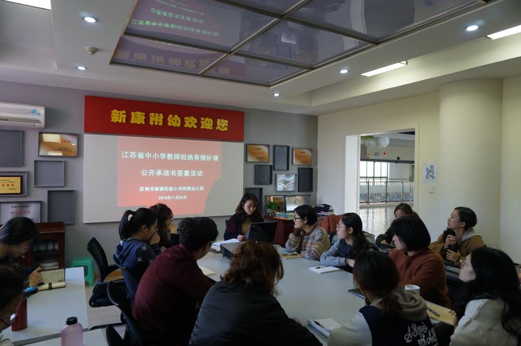 接着学习了江苏省教育厅文件《省教育厅关于开展拒绝有偿补课公开承诺活动的通知》,要求教师守住职业道德底线,规范职业行为。最后,全体教师签署了《江苏省中小学教师拒绝有偿补课公开承诺书》。