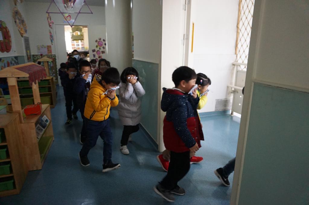 1月8日,新康实小附幼进行了消防疏散演习,上午10点30分,警报声响起,各班教师迅速按紧急预案的疏散线路带领幼儿拿起湿毛巾,捂住口鼻,弯腰小步快走。在每学期固定的演练下,中大班孩子已经能够井然有序地撤离到安全地带,小班幼儿在第一次消防演习中也能够安静地听从老师的指挥快速地逃生。很快孩子们集中到了操场安全地带,教师迅速地清点人数,并向总指挥报告。整个疏散活动只用了1分多钟。通过这次的演习活动,不仅让师生们懂得发生火灾后如何进行自救、如何逃生,更进一步加强了师生面对突发的重大事故沉着冷静,紧急撤离的安全意识。