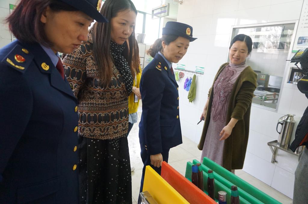 姑苏区市场监督管理局徐燕英副局长带队来到幼儿园食堂,对粗加工区、切配区、洗消区、备餐区、烹调区进行检查。