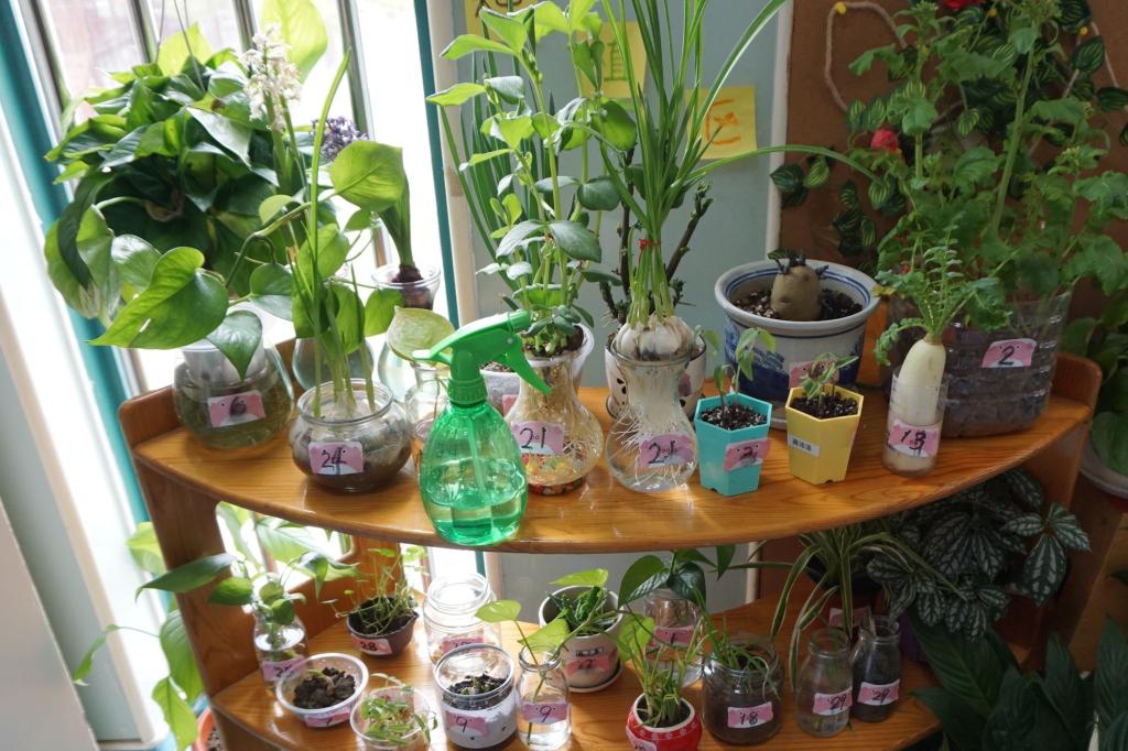 种植小植物:平时吃的蔬菜也能成为幼儿园自然角的一份子哦!土豆、萝卜、茨菇、大蒜……发芽了找个容器装饰一下,顿时绿意盎然了起来!