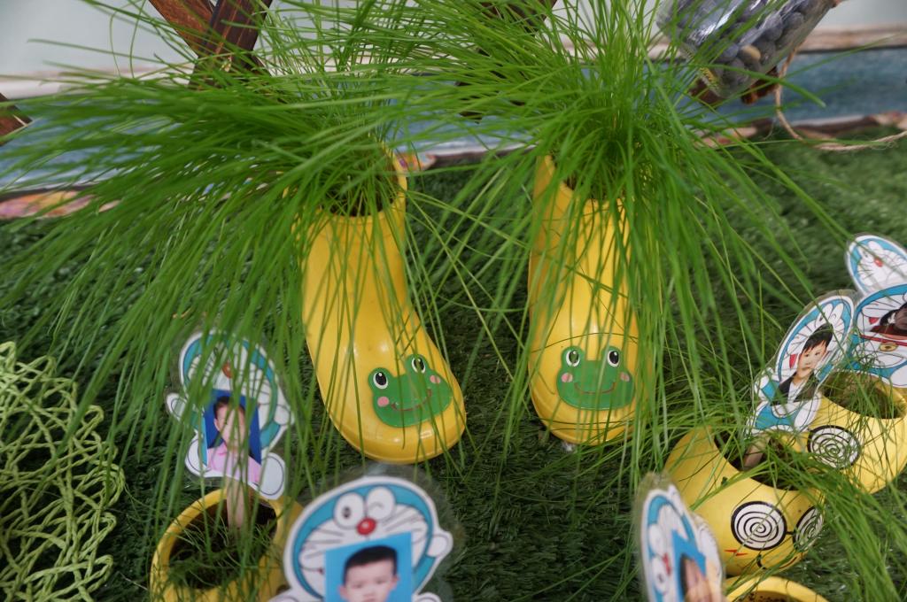 花花草草:这里主要摆放着宝贝们和家长共同收集的植物,有:白掌、绿宝石、吊兰、绿萝、风信子、含羞草、金钱草、洋牡丹等等。