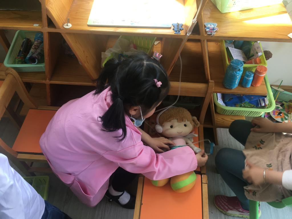 角色游戏中,孩子们可以是厨师,可以是建筑师,也可以是收银员,还可以做表演家,满足了他们不同的兴趣需要。