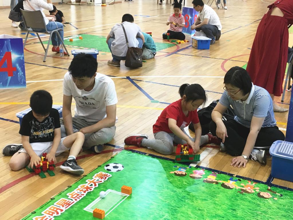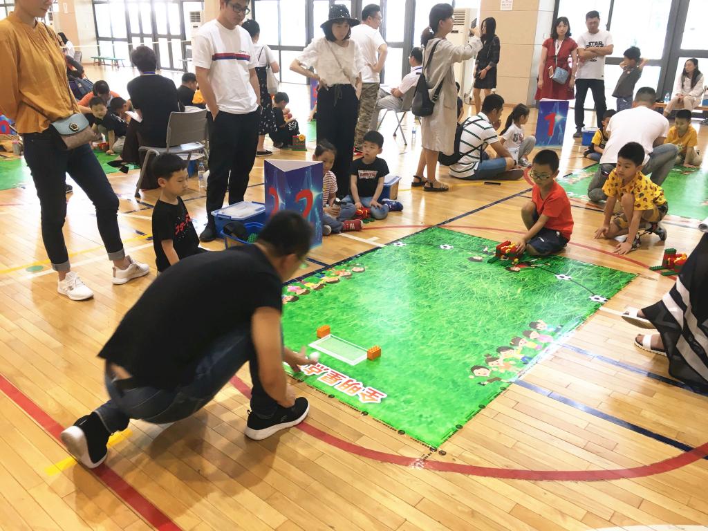 比赛中,新康实小附属幼儿园的宝贝们快速地搭建自己的发球器,熟练的搭建技巧,迅速的思维判断,不一会儿,发球器搭建完成。完成后宝贝们马上用自己的发球器进行射门,每个孩子有两轮发射机会,每一轮从5个点依次射门,通过进球数和时间进行打分,孩子们认真调试,小心操作,努力取得好成绩。