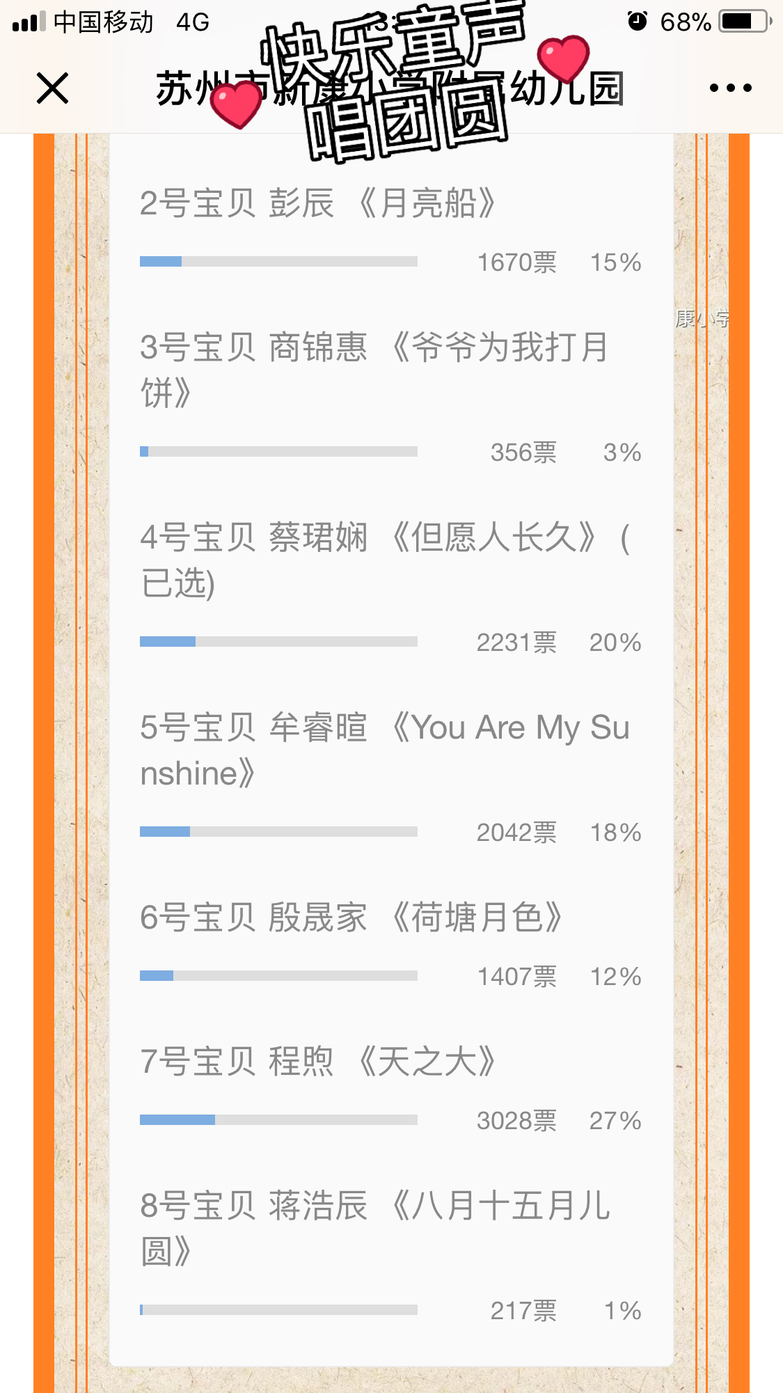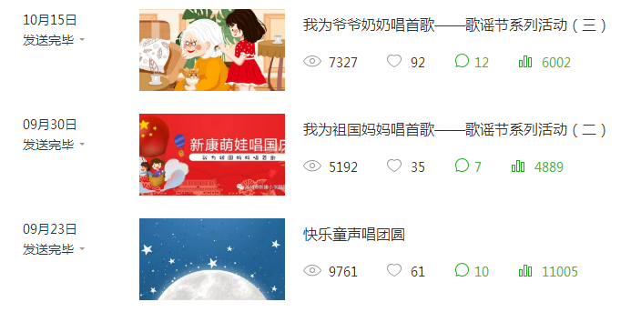这次歌谣节系列活动,家长直接参与,通过微信平台投票,资源得到充分利用,家长的热情也不断高涨,截止10月30日,共有投票21896票,阅读量22280次,传播之广可见一斑。