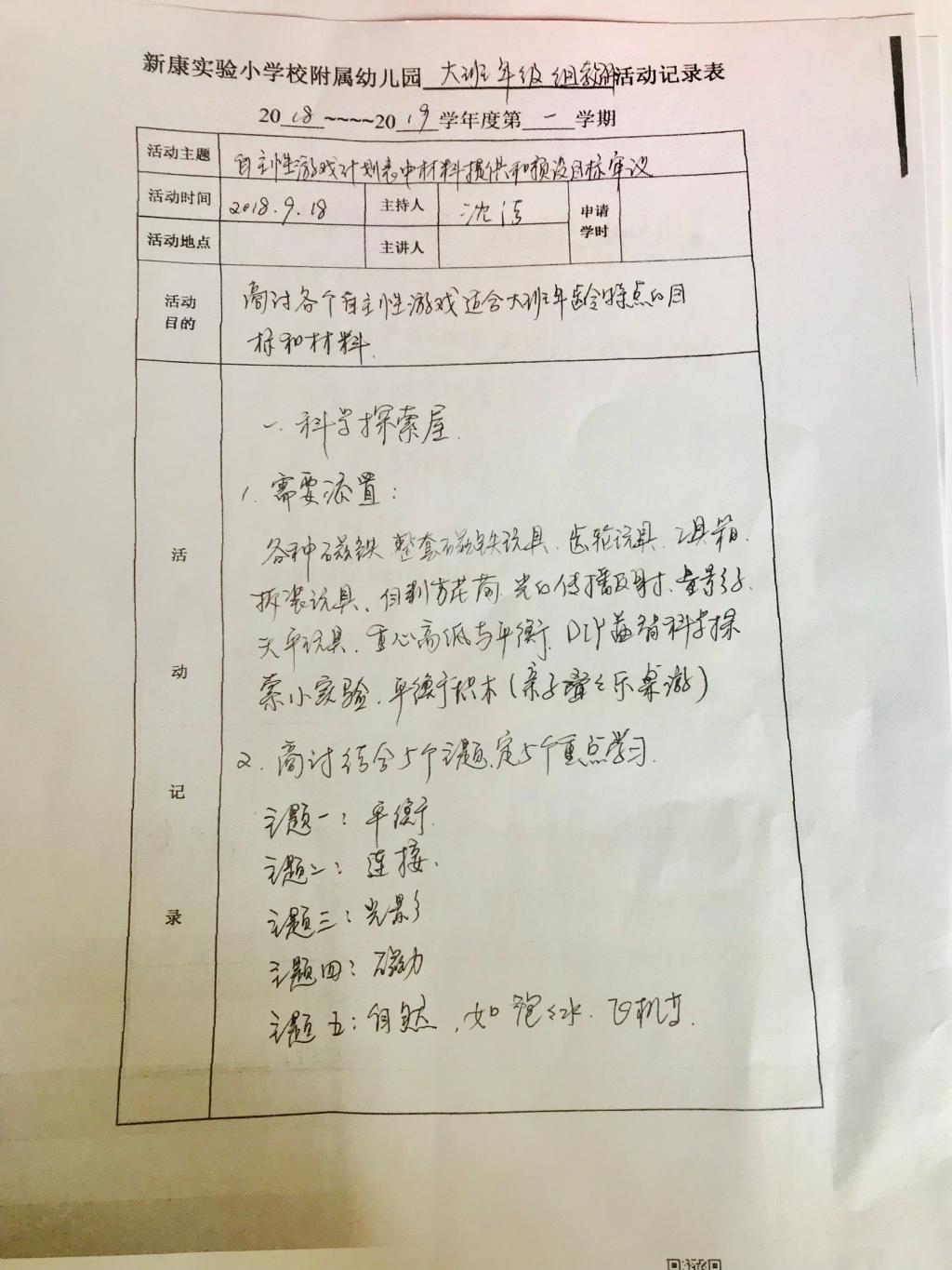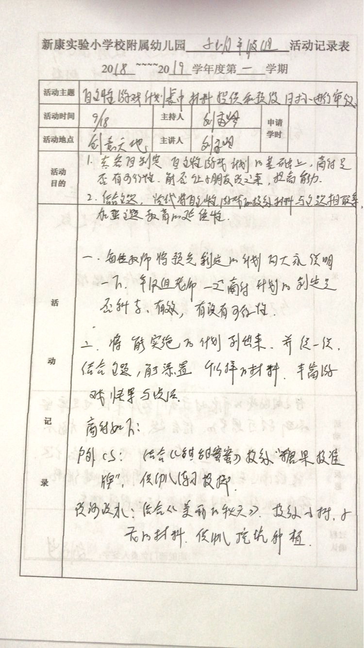 自主性游戏计划表中材料提供和预设目标审议活动2018-9-18